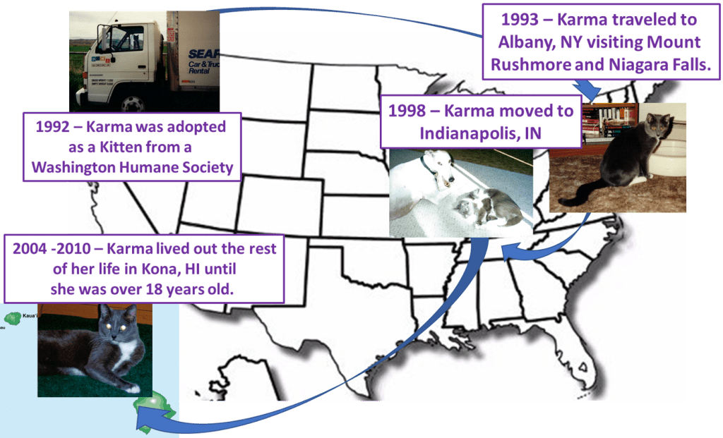 Good Karma Spay and Neuter Clinic is named for Dr. Kris’ first cat, Karma (1992-2010). As a constant friend and companion, she was usually Good Karma.